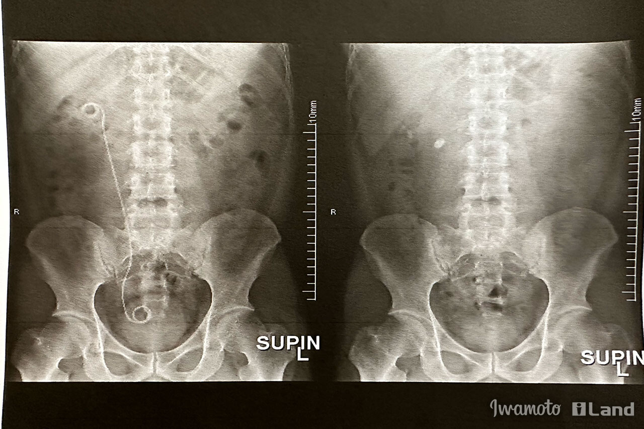 右腎臓に1cm超の大きな石が2つあり、うち1つが腎臓の出口付近にあって、より出口に近づいた時に痛みが出ていました。また、ふさぎかけていました。厳密に言うと左腎臓にも細かな石がありますが、今回は右側のみ。