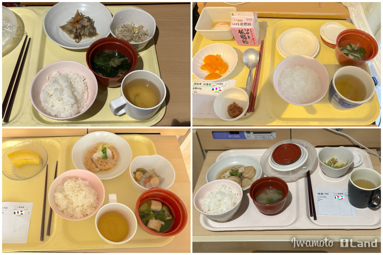 美味しかったです。手術日はなし。入院日・退院日は一食分。術後は薄めライトめから徐々に味がしっかりしてきました