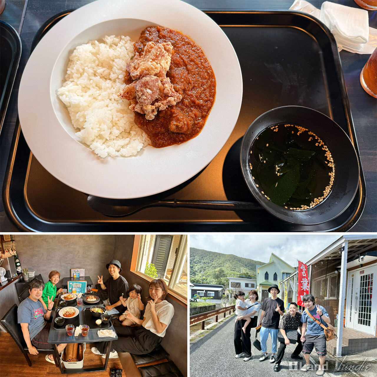 お昼に同窓生の龍郷にあるお店「居酒屋ルーツ」へ。琉球猪カレーにからあげトッピング。