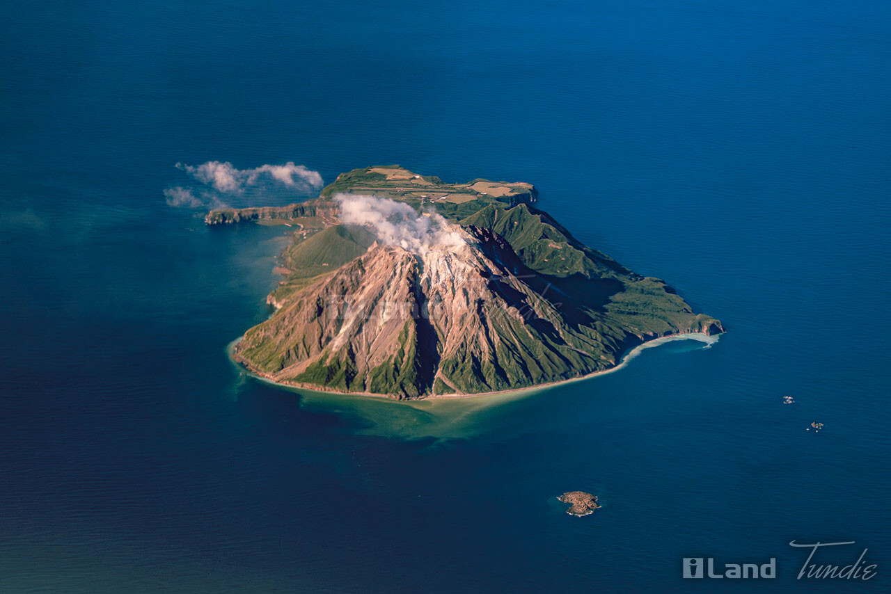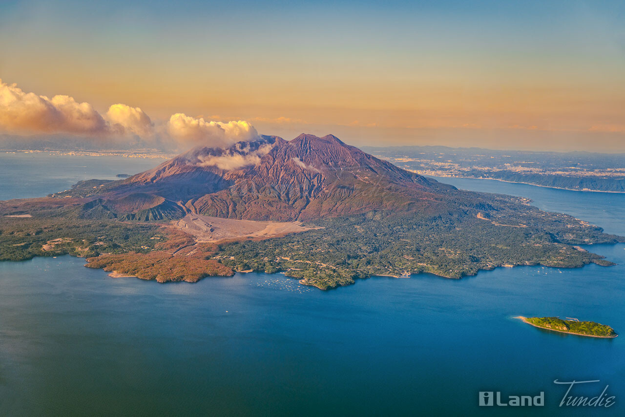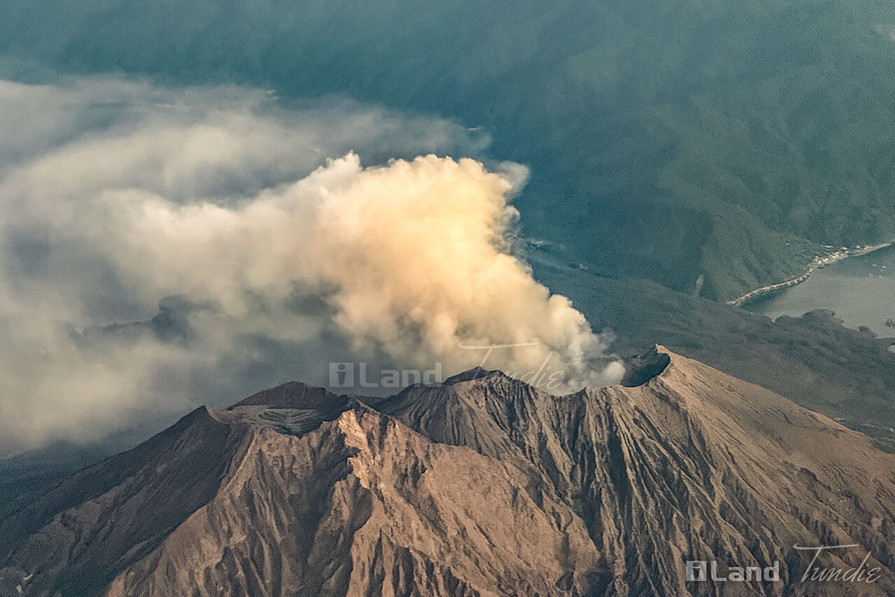 途中で見えた硫黄島 。大戦で激戦地だった硫黄島とは別ですよ。霞みを補正で取り除きまくっています。カメラを構えているとCAさんが「そろそろ屋久島ですよ」と教えてくださりましたが見えませんでした。反対側から見えたかな
