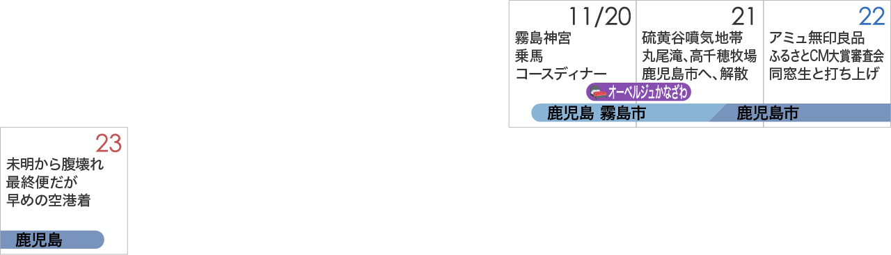 そして飛行機は最終便5:10pm発でしたが早々にバスに乗り、1pm鹿児島空港到着。
