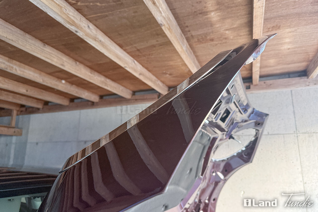 代替製品をエンジンフード鉄板に重ねると逆反りしてます。大丈夫かな