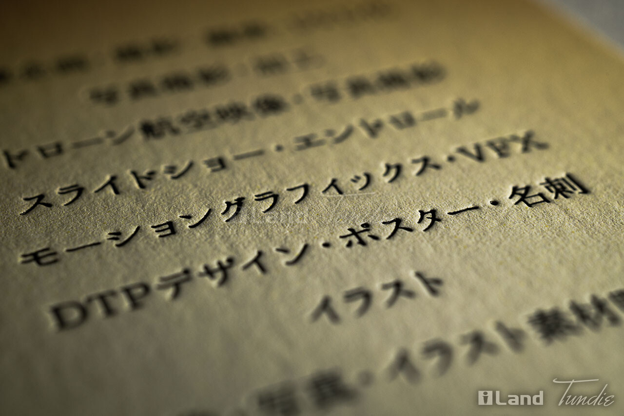 ウラ面初めての活版印刷。活版印刷は正直言うともう少し深さが出てほしかったです。照明を真横から当てて撮影しました。でも紙の厚みからこれが限界です