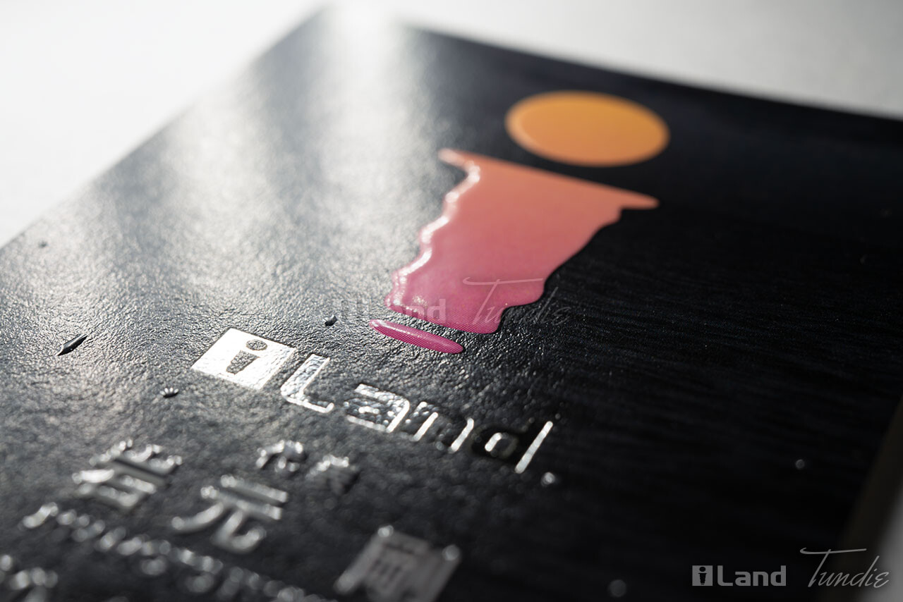 UVニス厚いです! お馴染みの銀箔押しのiLandロゴも綺麗