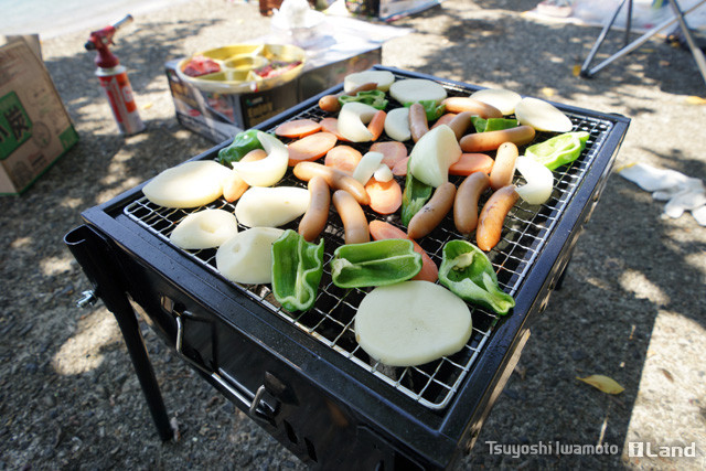 ヨッシーの新品バーベキューコンロを使って、肉も野菜もたっぷり